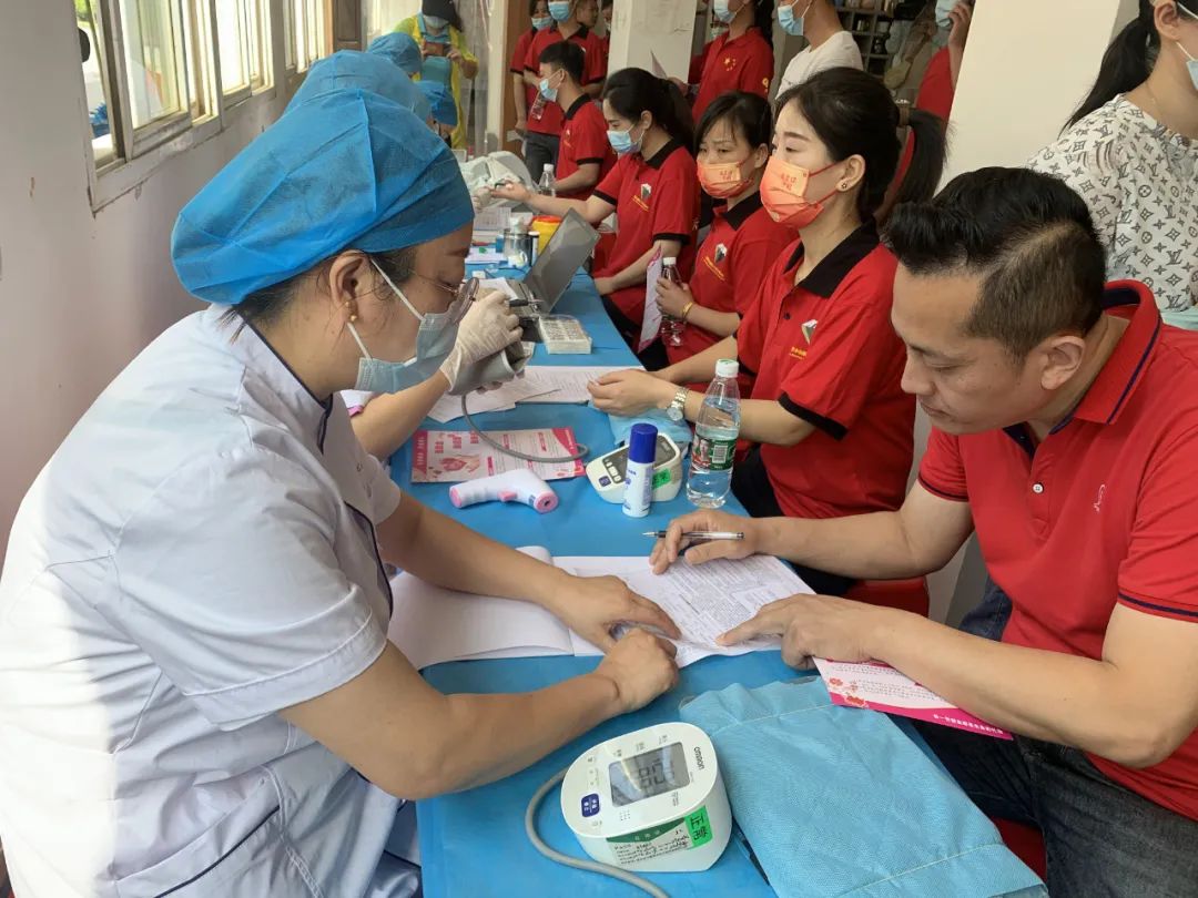 市中心血站的醫(yī)護(hù)人員認(rèn)真的為報名體檢的同事登記信息、做身體檢查。