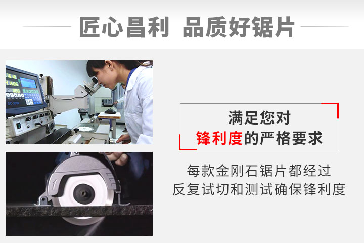 昌利石材切割機(jī)切割片片鋒利耐磨,手感輕快,一片多用,切割不掉齒,使用安全。